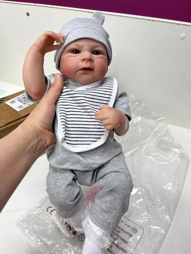 Baby identification Height: 19 inches Weight: 1.15kg Hair: Hand-pinned hair Eyes: Open eyes Eyebrow: 100% pure hand-drawn Nails: 100% hand-made nails, pink nail bed, translucent nails Series: Elijah Drinking and wetting: No