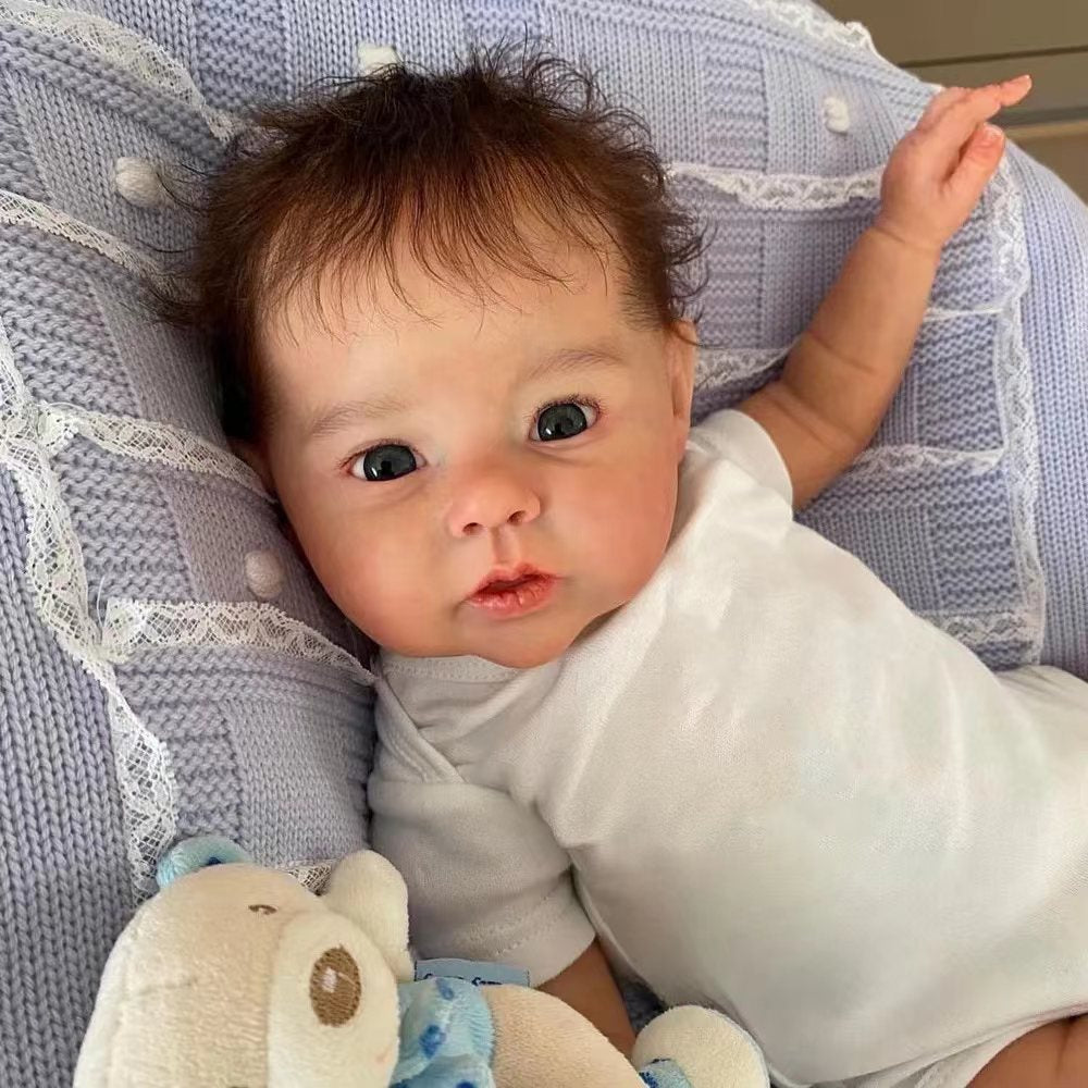 Baby Identification ❤ Height: 19 Inches/49cm ❤ Weight: 1.35kg ❤ Hair: Hand rooted hair ❤ Eyes: Open Eyes ❤ Eyebrows: 100% pure hand-drawn ❤ Nails: 100% hand-made nails, pink nail bed, translucent nails ❤ Series: meadow ❤ Drink and bathe: no