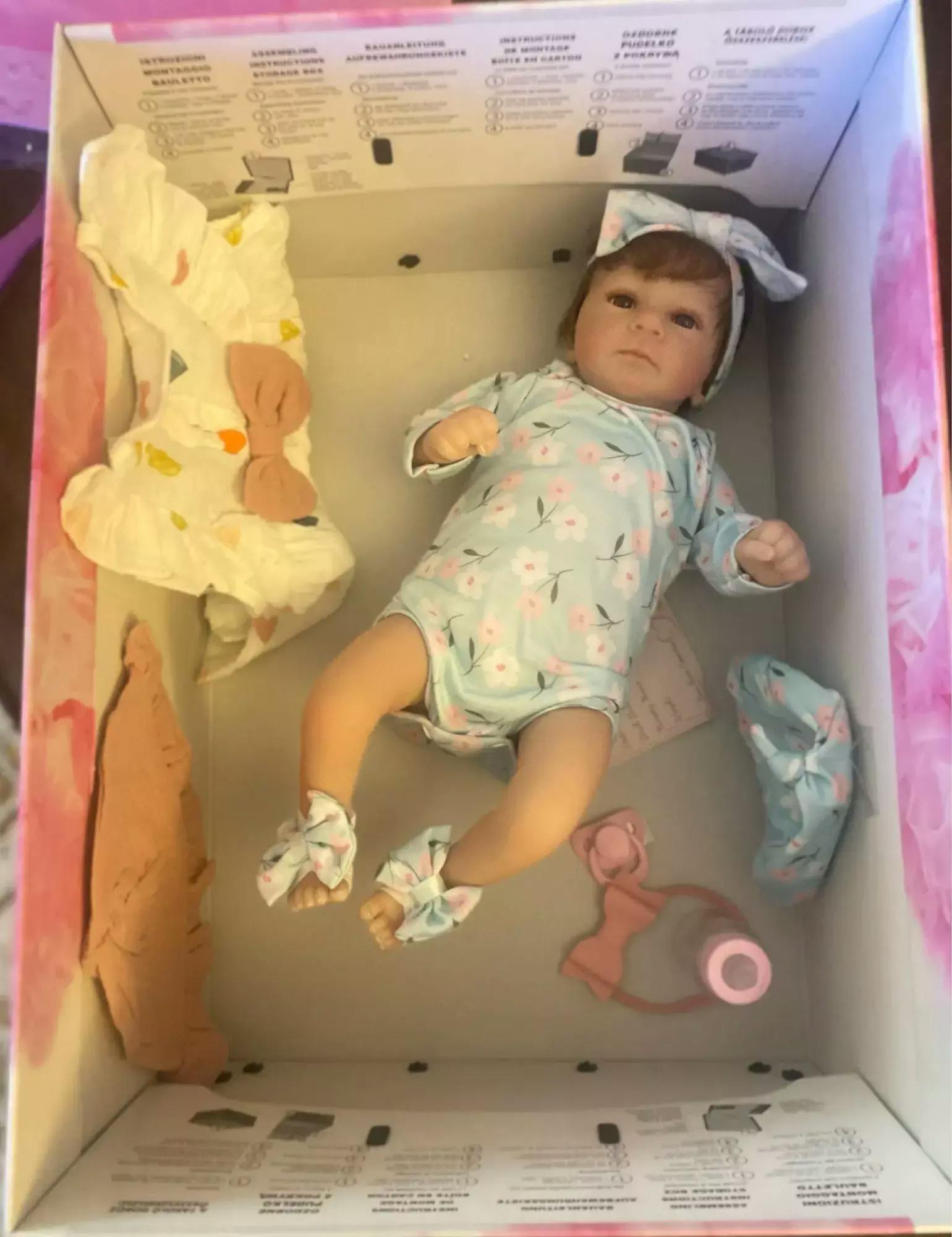 She is tiny and looks like a preemie baby. I have her in a 0-3 months sleeper and it’s a little big, so preemie clothes would be better. Overall, she’s so beautiful and looks so real!