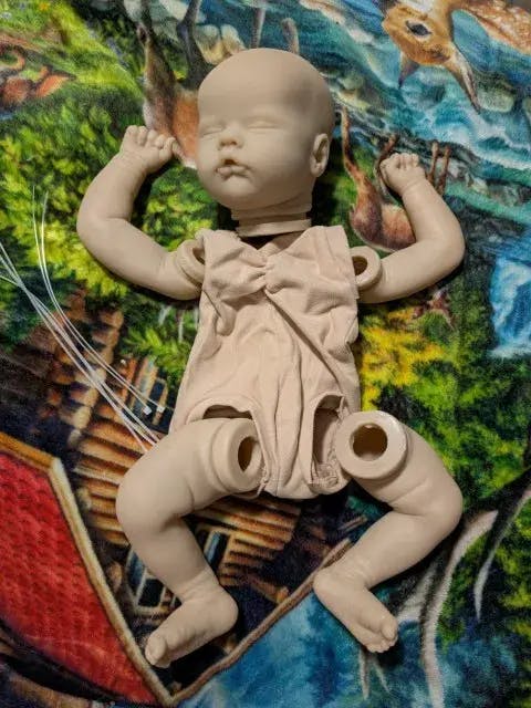 NOTE: This item is a blank and unassembled vinyl kit, the pictures of the finished doll with clothes are for reference only. If you decide to heat your vinyl it may crack or blister, it is not the fault of the manufacturer or inspection process