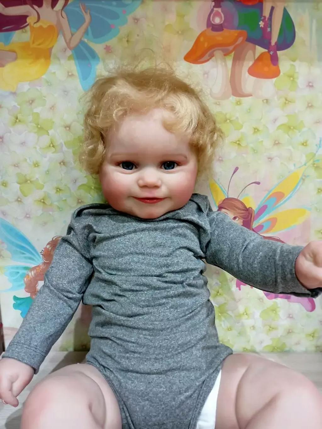 It's all about the sweetness! The children's shoulders and body are made of high-quality cotton, and the inside is filled with PP cotton; The arms and legs are made of gentletouch vinyl and the limbs are not detachable. These dolls have no gender. They can sit and lie down easily but cannot stand or bathe.