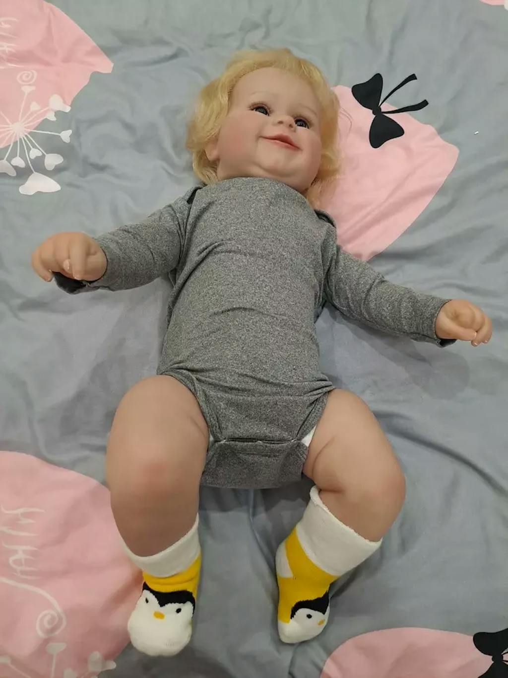 ❤ NEWBORN LOOKING-Baby doll's shoulder and body are cloth with internal filling PP cotton, 3/4 vinyl arms, and 3/4 vinyl legs, the body has no gender. The limbs are movable. Reborn baby doll can sit and lay down easily , but CANNOT stand, speak or be washed.