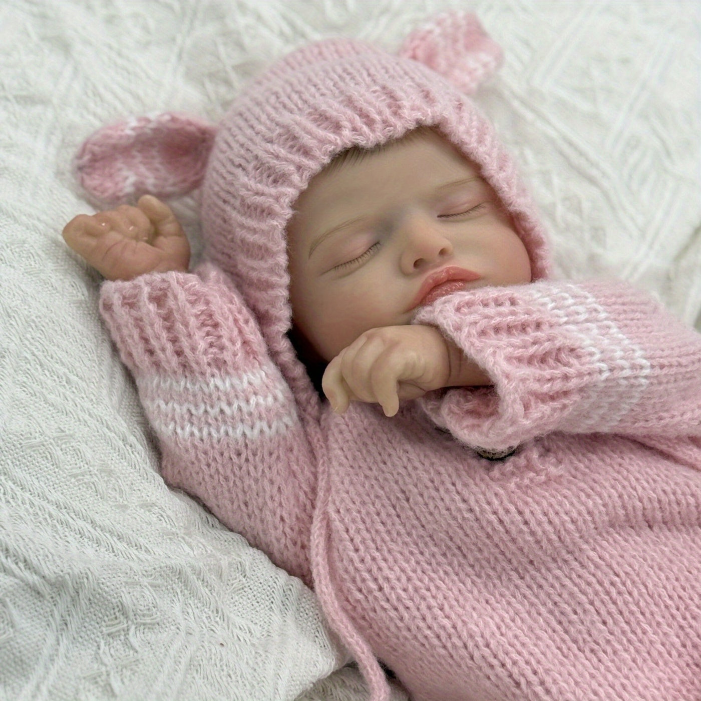 Baby Identification ❤ Height: 20 inches ❤ Weight: 1.4kg ❤ Hair: Hand-painted hair ❤ Eyes: Closed Eyes(Eyes won't blink) ❤ Eyebrows: 100% pure hand-drawn ❤ Nails: 100% hand-made nails, pink nail bed, translucent nails ❤ Series: Rosalie ❤ Drink and wet: No
