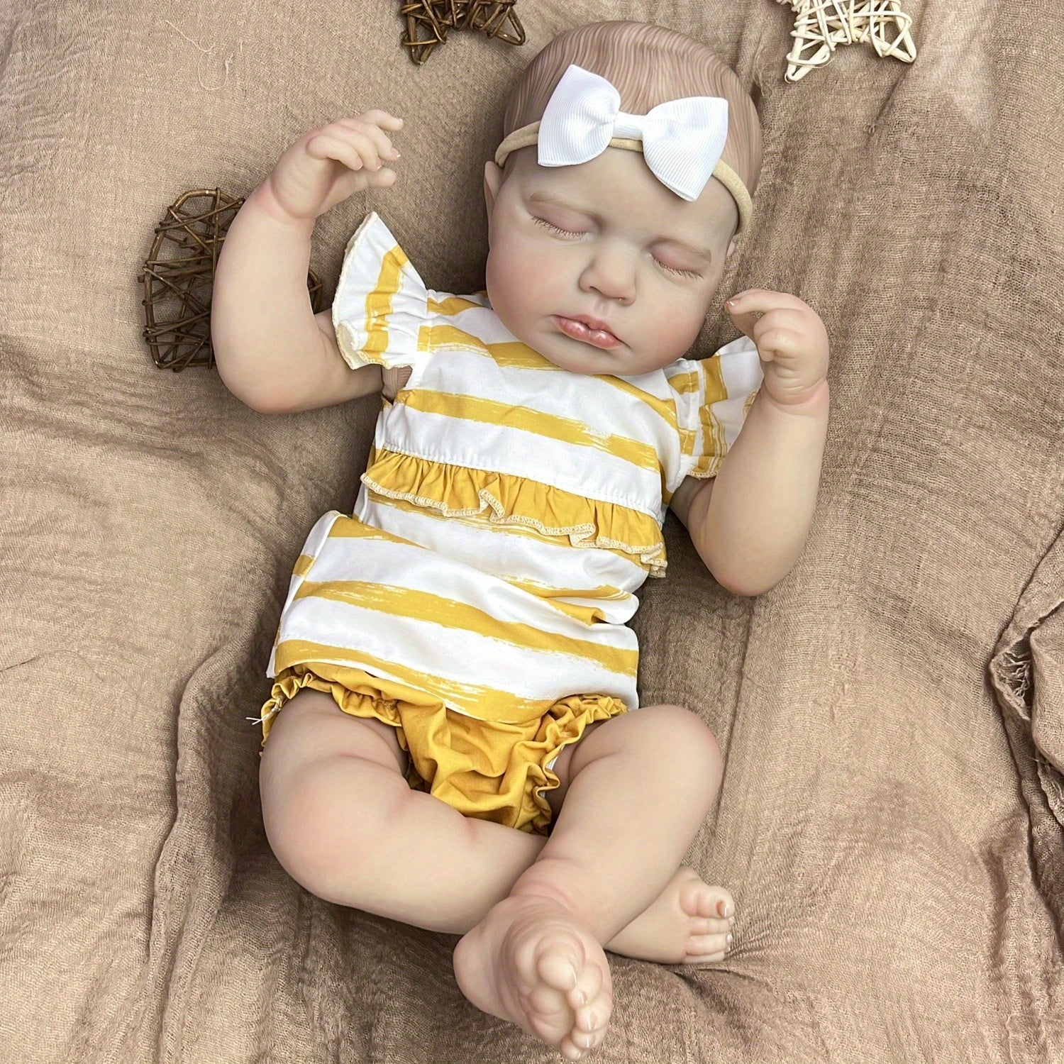 Identification of child ❤ Height: 20 inches ❤ Weight: 1.4 kg ❤ Eyes: Closed Eyes(Eyes won't blink) ❤ Hair: Hand-painted hair ❤ Eyebrows: 100% pure hand drawing ❤ Nails: 100% hand-made nails, pink nail bed, translucent nails ❤ Series: loulou