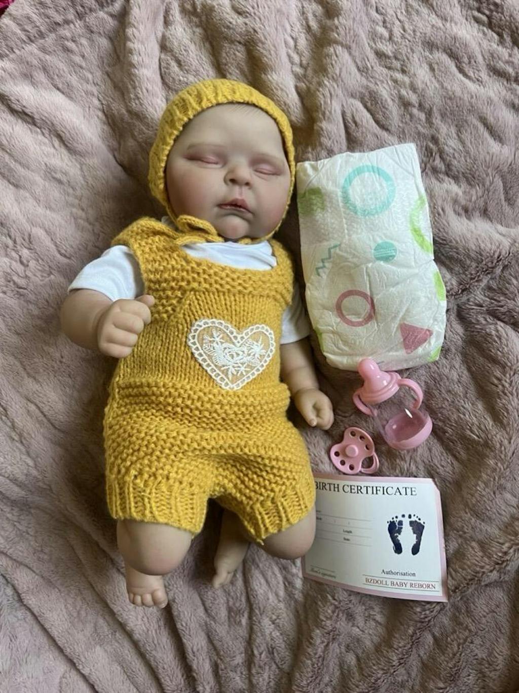 20 Inches 3D Skin Soft Body Sleeping Reborn Doll In Yellow Sweater- Peaches
