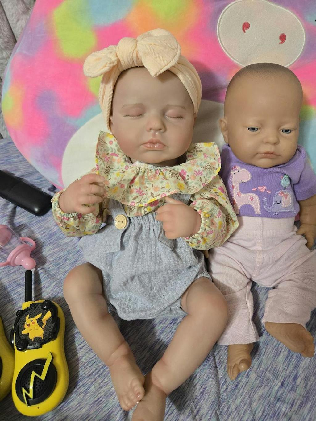 Body material: Vinyl body (girl) The body and limbs of these children are made Made of GentleTouch vinyl and the limbs are removable. The baby is made of silica gel, is a girl and can easily sit and lie down, stand up and take a bath.