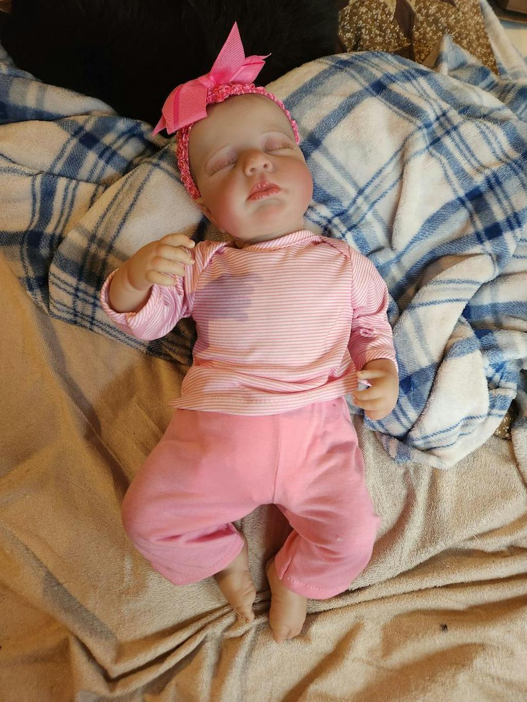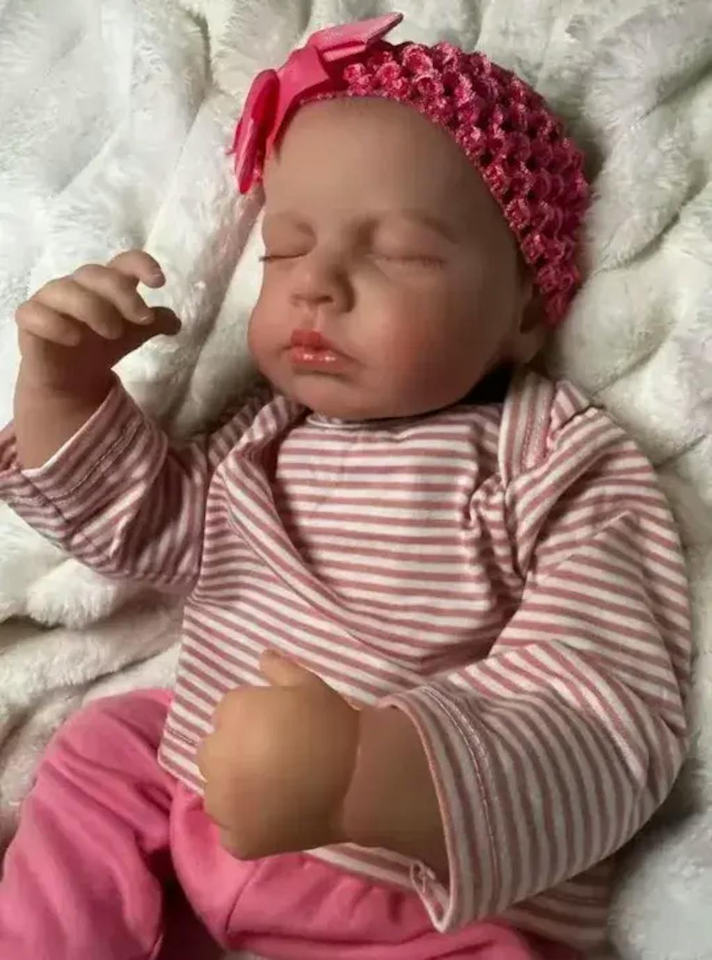 Baby's identification ❤ Height: 20 inch ❤ Weight: 1.4kg ❤ Hair: Hand Painted Hair ❤ Eyes: Closed Eyes ❤ Eyebrow: 100% pure hand-drawn ❤ Nail: 100% handmade nails, pink nail bed, translucent nails ❤ Scent: A soft baby powder scent ❤ Serie: Loulou