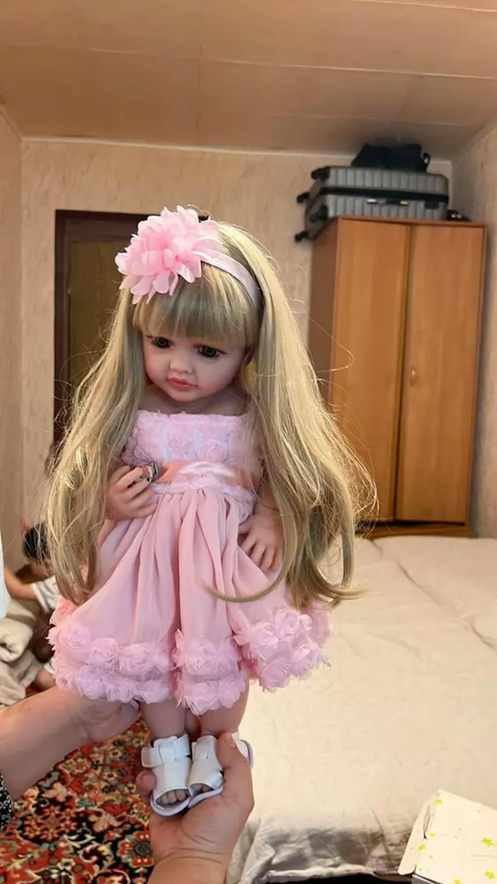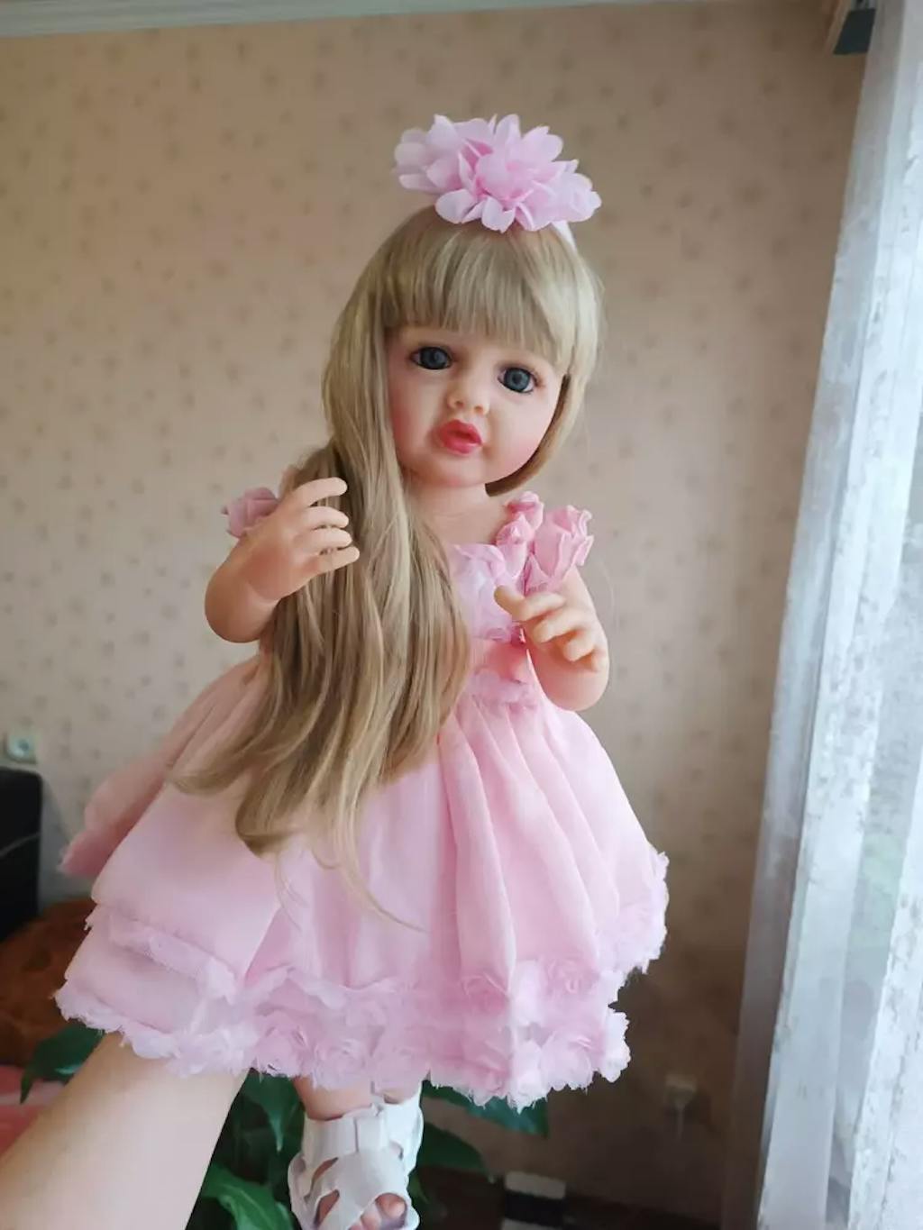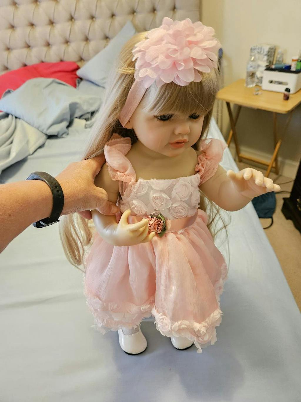 ❤ SIZE - 22''/ 55cm from head to toe, with a soft touch of the vinyl head, face and limbs, weighted body for a real baby feel and the kids can hand her to everywhere. ❤ HAIR - Hair can be washed and dressed. If the hair is a little messy, please use the special wig comb to take care of it gently. ❤ CLOTHES - Handmade. According to the doll size, The doll will come with random clothes. ❤ SAFETY CERTIFICATION - Conforms or exceeds the safety requirements of ASTM F963 and EN71 for ages 3+, which is safe for your children. ❤ GREAT FOR - Festival gifts, birthday gifts, children play with toys, grandpa or grandma accompany doll, lovers and collectors collection.