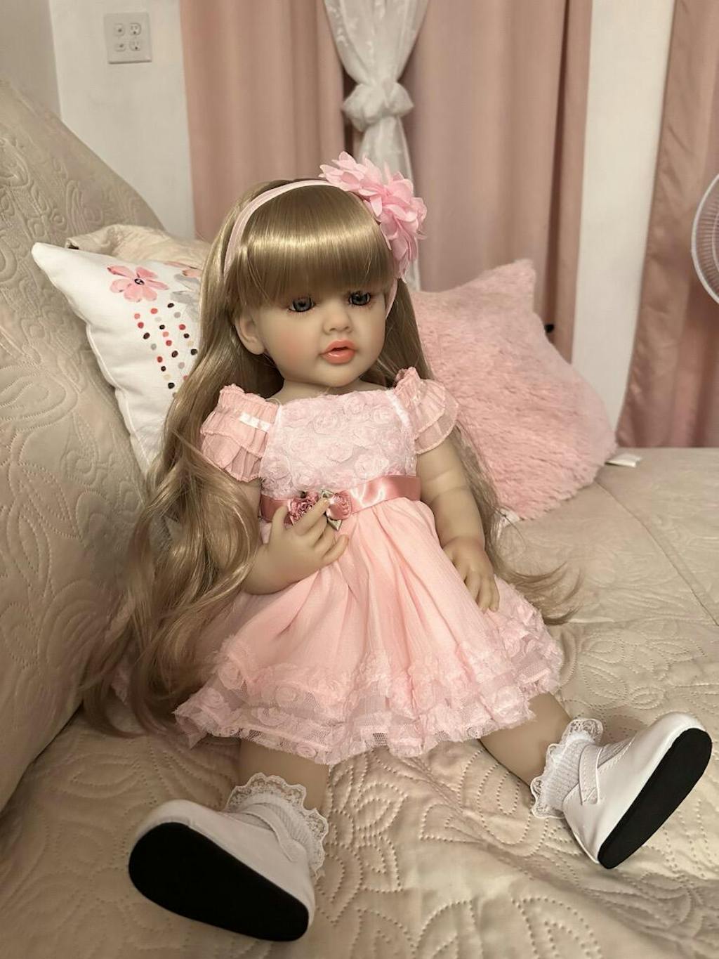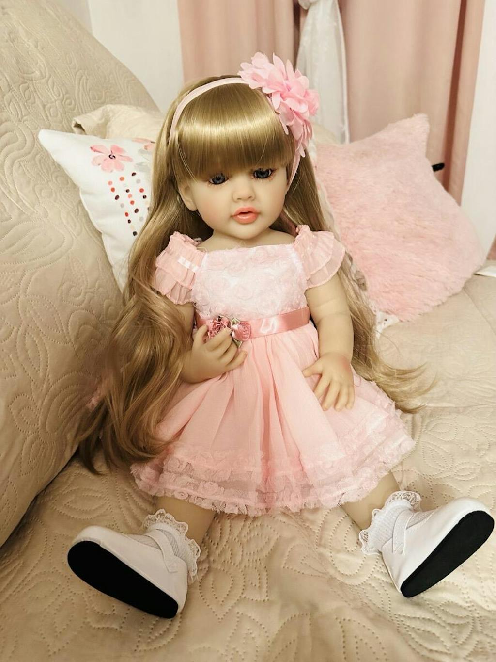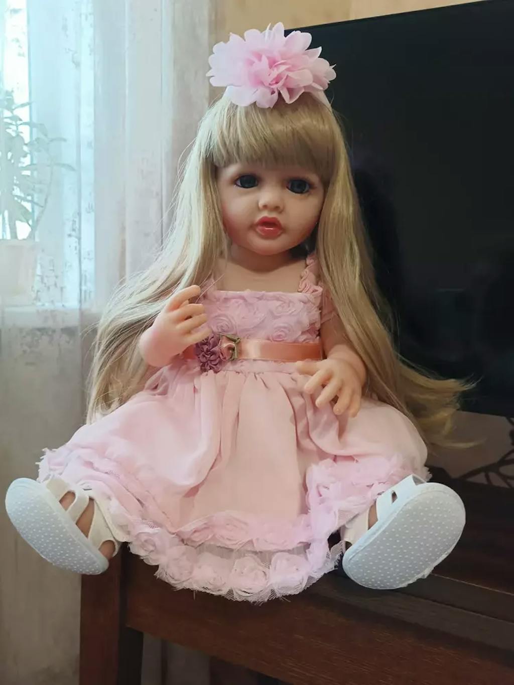 ❤ SIZE - 22''/ 55cm from head to toe, with a soft touch of the vinyl head, face and limbs, weighted body for a real baby feel and the kids can hand her to everywhere. ❤ HAIR - Hair can be washed and dressed. If the hair is a little messy, please use the special wig comb to take care of it gently. ❤ CLOTHES - Handmade. According to the doll size, The doll will come with random clothes. ❤ SAFETY CERTIFICATION - Conforms or exceeds the safety requirements of ASTM F963 and EN71 for ages 3+, which is safe for your children. ❤ GREAT FOR - Festival gifts, birthday gifts, children play with toys, grandpa or grandma accompany doll, lovers and collectors collection.