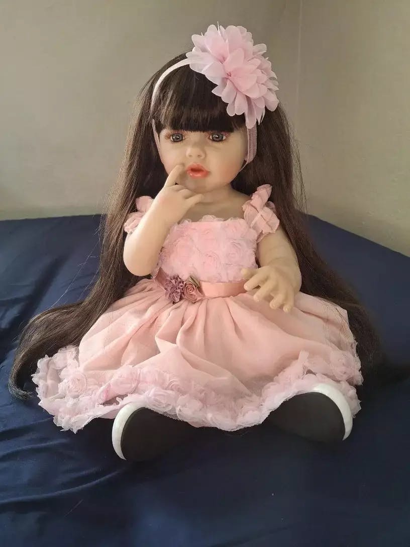22 Inches Long Brown Hair Reborn Doll Girl In Pink Dress-Betty