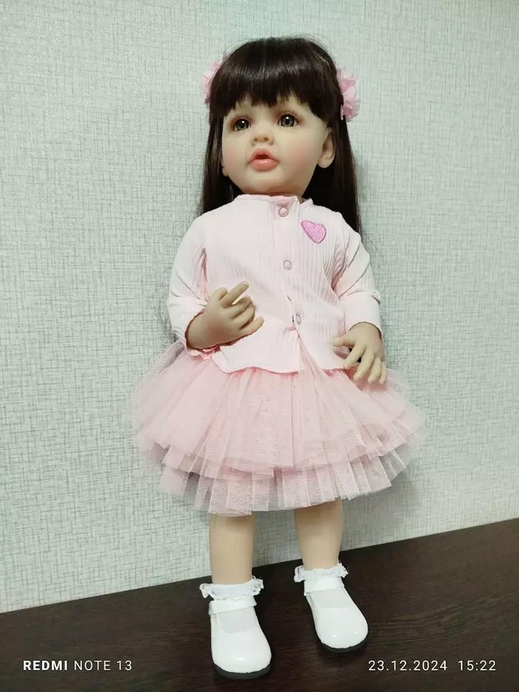 Baby's identification ❤ Height: 22 inches ❤ Weight: 1.5kg ❤ Hair: Paste wigs ❤ Eyes: Open eyes(Eyes won't blink) ❤ Eyebrow: 100% pure hand-drawn ❤ Nail: 100% handmade nails, pink nail bed, translucent nails ❤ Scent: A soft baby powder scent ❤ Serie: betty
