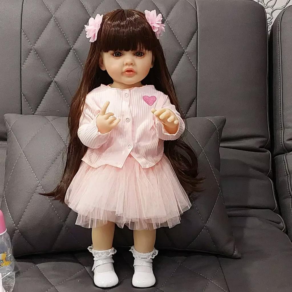 ❤ SIZE - 22''/ 55cm from head to toe, with a soft touch of the vinyl head, face and limbs, weighted body for a real baby feel and the kids can hand her to everywhere. ❤ HAIR - Hair can be washed and dressed. If the hair is a little messy, please use the special wig comb to take care of it gently. ❤ CLOTHES - Handmade. According to the doll size, The doll will come with random clothes. ❤ SAFETY CERTIFICATION - Conforms or exceeds the safety requirements of ASTM F963 and EN71 for ages 3+, which is safe for your children. ❤ GREAT FOR - Festival gifts, birthday gifts, children play with toys, grandpa or grandma accompany doll, lovers and collectors collection.