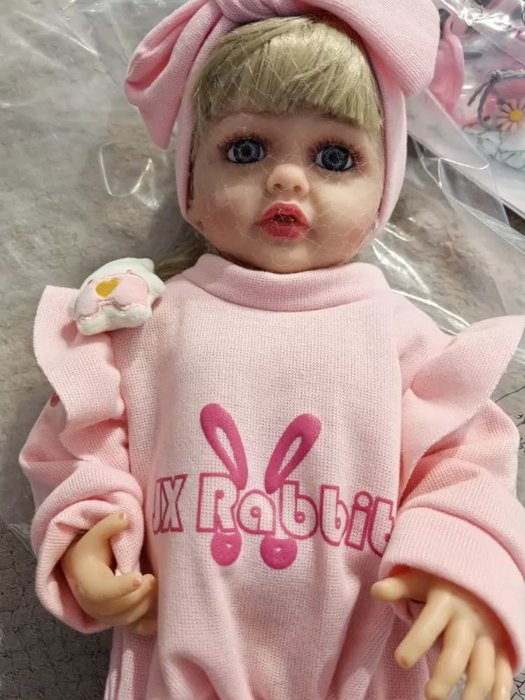 22 Inches Open Eyes Long Blonde Hair Reborn Girl in Pink Bodysuit-Betty