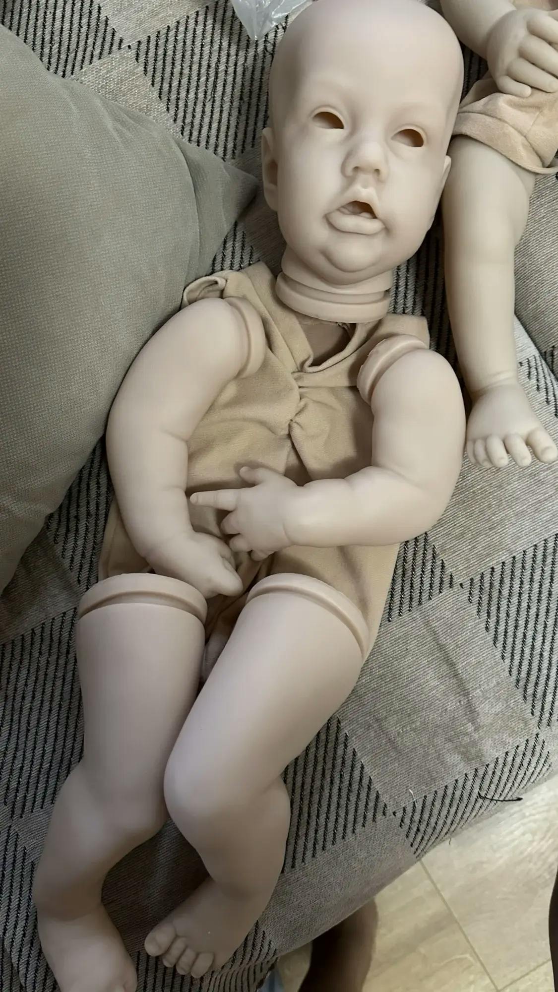 NOTE: This item is a blank and unassembled vinyl kit, the pictures of the finished doll with clothes are for reference only. If you decide to heat your vinyl it may crack or blister, it is not the fault of the manufacturer or inspection process