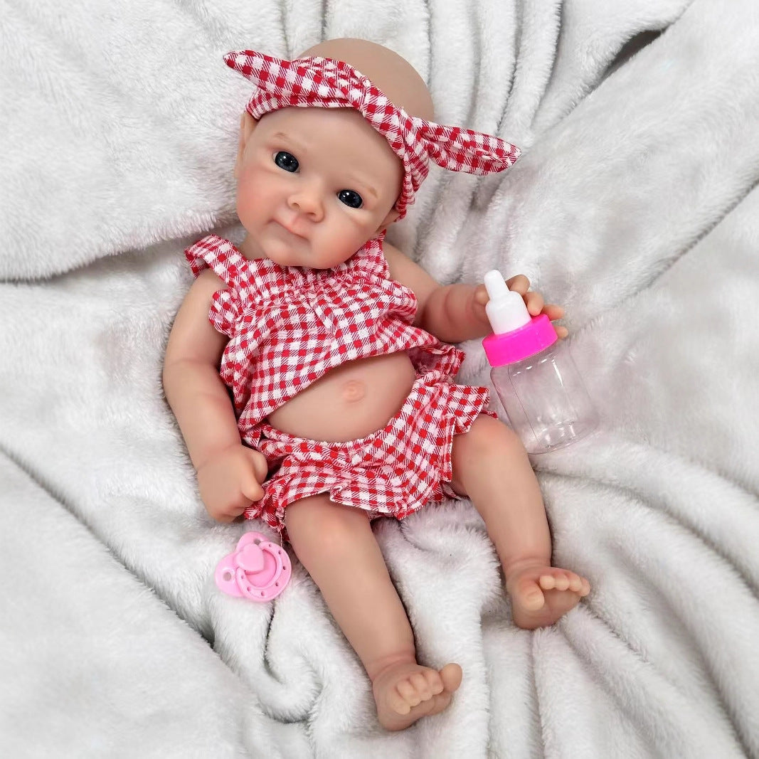 Material: Full Silicone Height: 30cm Eyes: open eyes(Eyes won't blink) Weight: about 1.3kg Series: bettie gender: Girl Bath: Yes Drinking: No Material and structure: REAL FULL SILICONE REBORN BABY: Completely different from a hollow vinyl baby doll, she is all silicone and poseable, and can also be folded. She feels like a newborn baby and feels absolutely real when held in your arms! Package included: 1 x Reborn Baby Doll 1 x Doll Clothes(same as pictures) 1 x Feeding Bottle(random color) 1 x Diaper