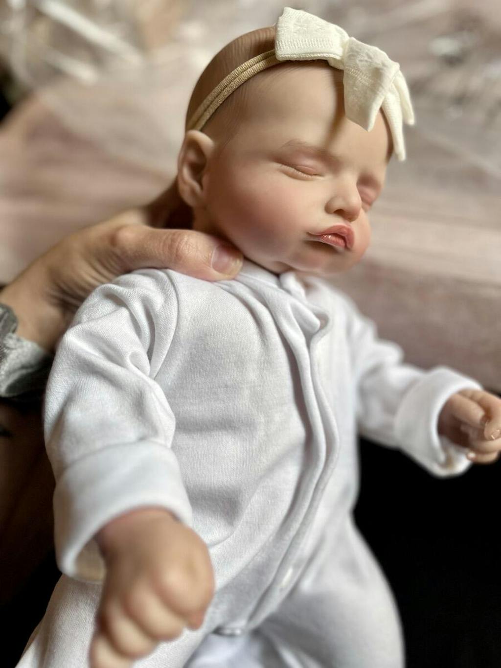 Baby Identification ❤ Height: 48cm ❤ Weight: 1.35kg ❤ Hair: Hand-painted hair ❤ Eyes: Closed Eyes(Eyes won't blink) ❤ Eyebrows: 100% pure hand-drawn ❤ Nails: 100% hand-made nails, pink nail bed, translucent nails ❤ Series: Rosalie ❤ Drink and wet: No