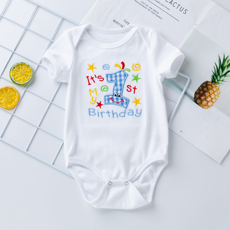 Cartoon Embroidered Short Sleeve Plaid Shorts 2-Piece Set for 22-24 Inches Dolls